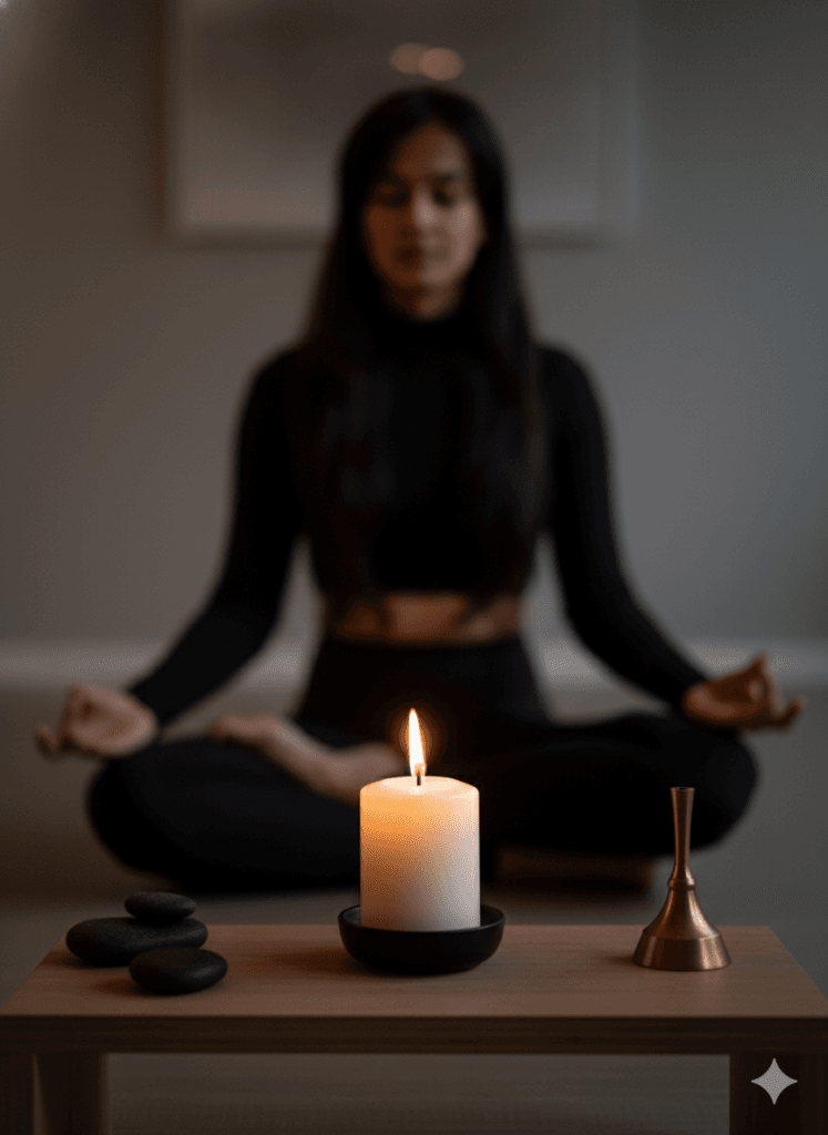 Eye warm-ups + breath + candle focus to build concentration and mental clarity.